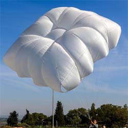 パラモーターフレームに取り付けるタイプ。通常飛行時には邪魔にならず、使うときには大きなダブルハンドルにより、確実に操作することができます。